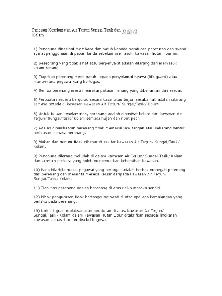 341 Memastikan risiko kritikal yang memberi kesan ke atas pencapaian perkhidmatan teras menjejaskan pengurusan kewangan dan ketidakberkesanan pengurusan sumber dikawal secara sistematik. Laut danau sungai dan kolam renang adalah lingkungan yang berbahaya Pernyataan itu sangat benar namun bukan hanya itu. BOMBA antara pasukan keselamatan yang ditugaskan mencari mangsa lemas.
