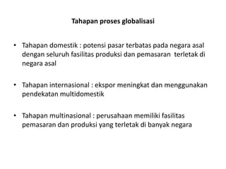 Jadi globalisasi bisa diartikan sebagai proses penyebaran unsur-unsur baru baik berupa informasi pemikiran gaya hidup maupun teknologi. Strategi Operasi di Lingkungan Global. Berikut penjelasan singkat dari keempat strategi ini.