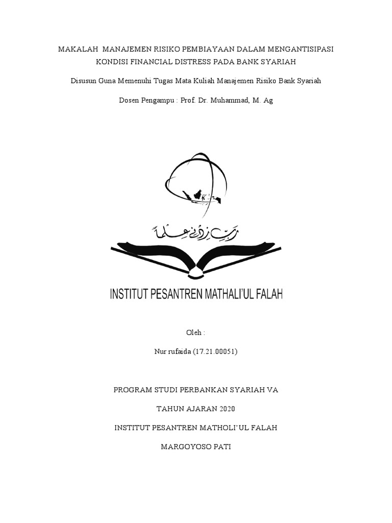 Makalah Manajemen Risiko Pembiayaan Dalam Mengantisipasi Kondisi Financial Distress Pada Bank Syariah Pdf