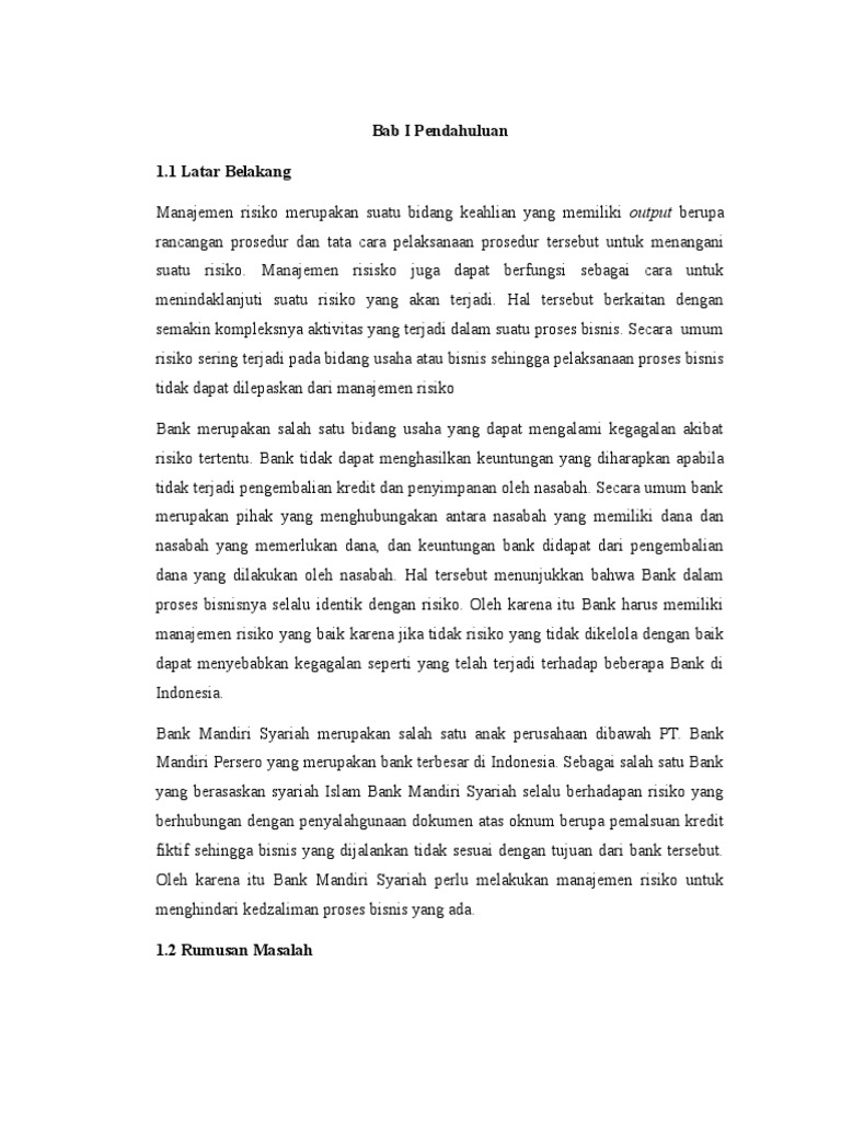 Manejemen Resiko Pada Bank Syariah Mandiri Cabang Bogor Kasus Kredit Fiktif Pdf