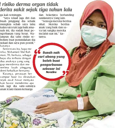 2021-04-01 - Oleh Syamsiah Sahat ENAM tahun lalu apabila isterinya disahkan mengalami kegagalan buah pinggang Gordon Ling Fu Chur 34 mengambil keputusan nekad untuk mendermakan sebelah buah pinggangnya kepada ratu hatinya itu. Penderma juga secara rutin menjalani penilaian. Risiko kematian adalah berbeza mengikut jenis organ.
